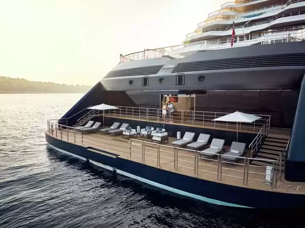 El Evrima es un barco con más de 227 metros de eslora y una de sus características únicas es su marina (puerto deportivo), que permite a los pasajeros acceder directamente al mar y a pequeñas embarcaciones.