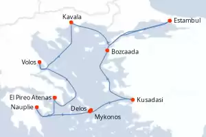 Itinerario : El Pireo Atenas, Nauplie, Mykonos, Delos, Kusadasi, Bozcaada, Estambul, Kavala, Volos, El Pireo Atenas