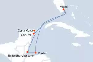 Itinerario : Miami, Roatan, Belize (harvest caye), Costa Maya, Cozumel, Miami