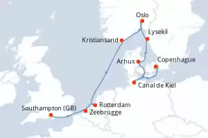 Itinerario : Southampton, Zeebrugge, Rotterdam, Kristiansand, Oslo, Lysekil, Arhus, Canal de Kiel, Copenhague