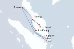 Itinerario : Singapur, Port Kelang, Penang, Porto Malai, Phuket, Singapur