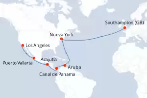 Itinerario : Southampton, Nueva York, Aruba, Canal de Panama, Acajutla, Puerto Vallarta, Los Angeles