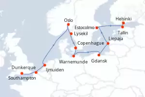 Itinerario : Southampton, Dunkerque, Rotterdam, Oslo, Gothenburg, Kalundborg, Warnemunde, Ronne, Visby, Helsinki, Tallin, Estocolmo, Copenhague
