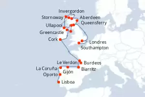 Itinerario : Southampton, Londres, Queensferry, Aberdeen, Invergordon, Stornoway, Ullapool, Greencastle, Glasgow, Douglas, Belfast, Dun Laoghaire, Cork, Le Verdon, Burdeos, Biarritz, Gijón, La Coruña, Oporto, Lisboa
