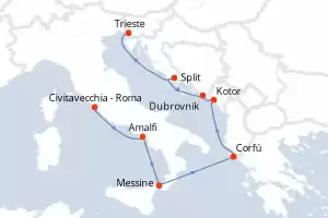 Itinerario : Civitavecchia - Roma, Amalfi, Messine, Corfú, Kotor, Dubrovnik, Split, Trieste