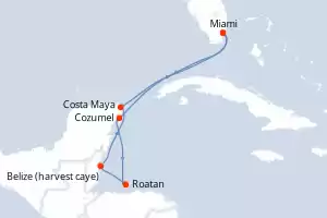 Itinerario : Miami, Cozumel, Roatan, Belize (harvest caye), Costa Maya, Miami