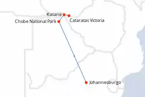 En un verdadero crucero de safari, a bordo de pequeñas embarcaciones o en vehículos todoterreno, los viajeros pueden descubrir paisajes y animales, sin duda, un área de África repleta de vida salvaje. Al final del crucero por el lago, los pasajeros parten hacia las legendarias Cataratas Victoria, situadas río abajo en el Zambeze, y hacia el hermoso Parque Nacional de Chobe (Botsuana).