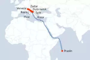Itinerario : Venecia, Rovinj, Zadar, Praslin, Split, Hvar, Korcula, Mljet, Kotor, Dubrovnik