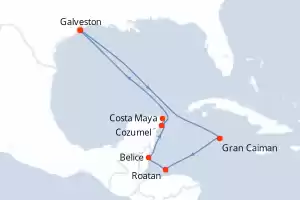 Itinerario : Galveston, Gran Caiman, Roatan, Belice, Costa Maya, Cozumel, Galveston