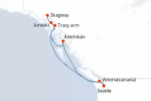 Itinerario : Seattle, Ketchikán, Sitka, Skagway, Juneau, Tracy arm, Victoria, Seattle