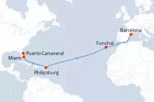 Itinerario : Puerto Canaveral, Miami, Philipsburg, Funchal, Barcelona