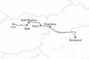 Itinerario : Budapest, Bratislava, Valle Wachau, Melk, Linz, Valle Wachau, Viena, Budapest