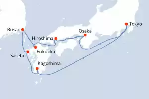Itinerario : Tokyo, Osaka, Hiroshima, Fukuoka, Busan, Sasebo, Kagoshima, Tokyo